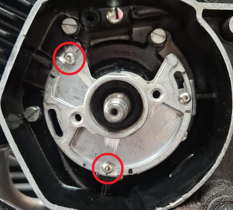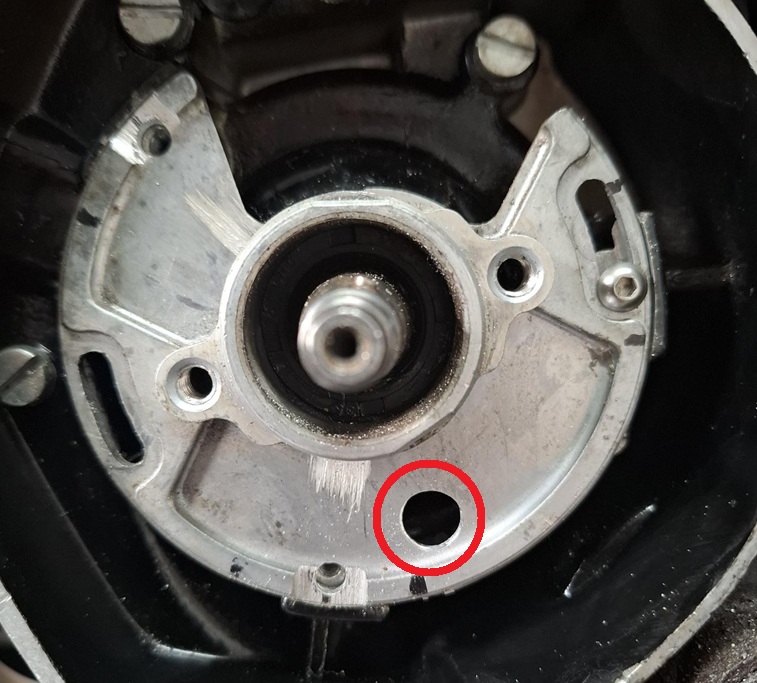 Vijl vervolgens de kraag vlak op de plek waar de bevestigingsbouten komen. Boor vervolgens de gaten zodat de grondplaat bevestigd kan worden. Let hierbij op de positie van de rechter bout. Deze bepaalt de juiste voorontsteking.