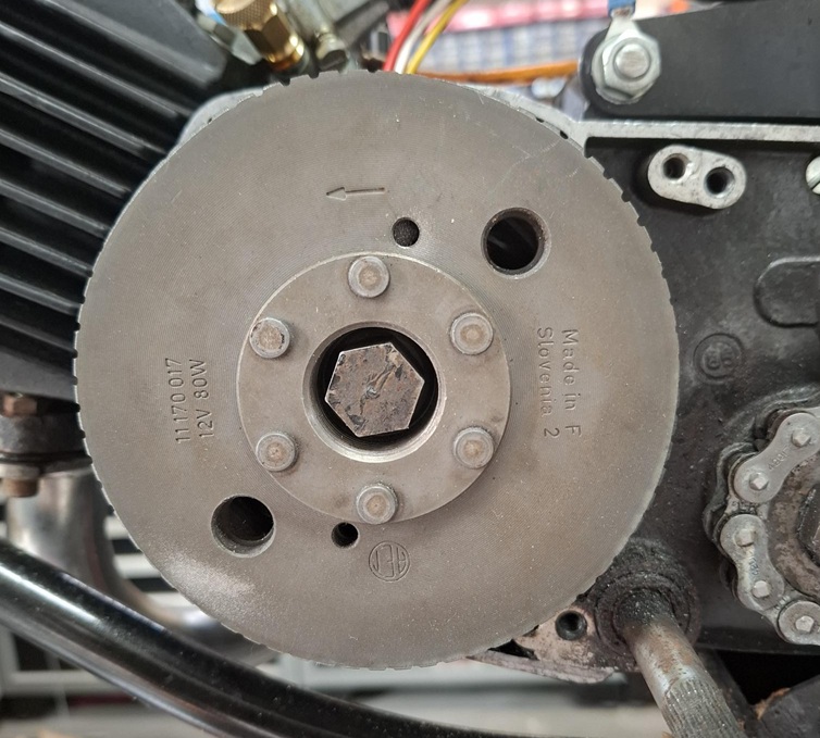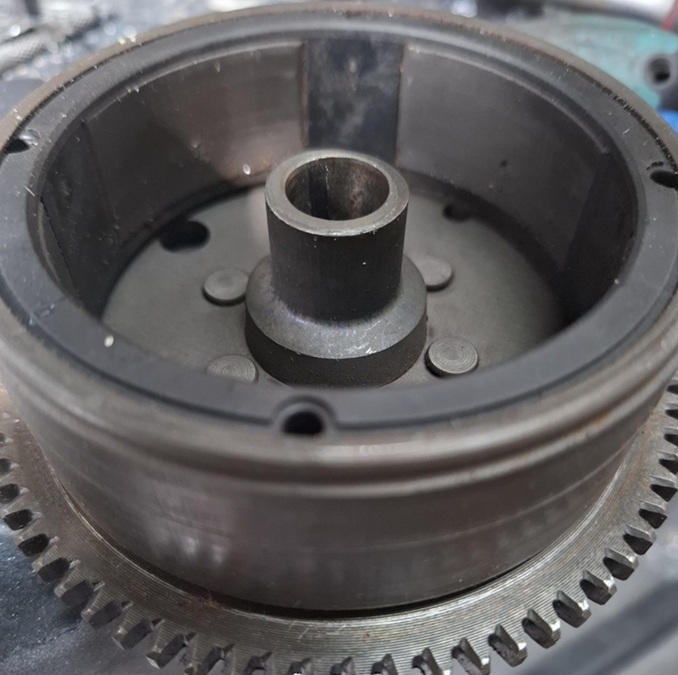 Het vliegwiel is aan de binnenzijde voorzien van 4 magneten. De buitenzijde heeft een starterkrans.